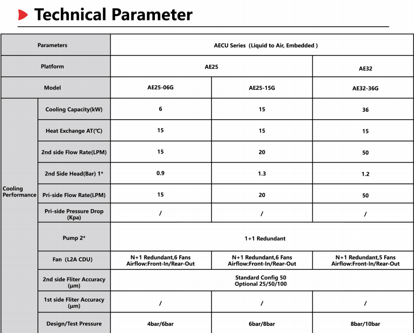 The ECU / AECU / RCU / ARCU(AALC) cooling distribution unit is a device mainly usedto achieve physical isolation and heat exchange of primary and secondary coolingmedia. lt integrates secondary side drive modules, stabilizing and replenishing liquidmodules, degassing modules, filtering modules, and real-time monitoring functionsfor temperature, flow, and pressure. lt has the features of high redundancy and reliabil-ity of key components, fast installation of interface support, and real-time intelligentcontrol of key parameters, and is suitable for application scenarios in multi cabinetcomputer rooms.