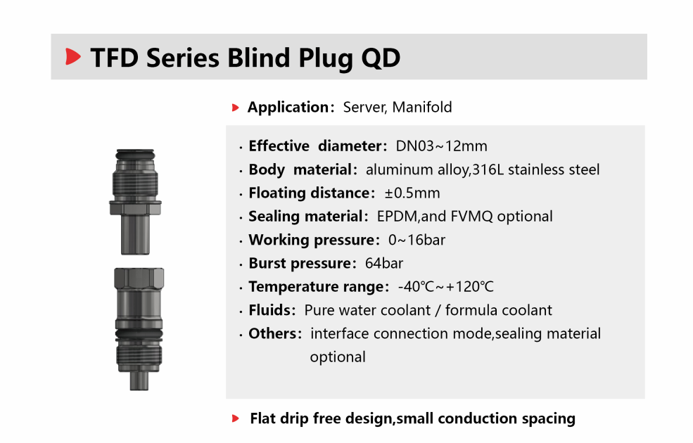 ACT designs and manufactures every quick disconnect couplings (QDs) to specifically meet the demands for high performance in liquid cooling for sensitive and critical environments, including the product series including UQD/ UQDB(blind)/TBV(ball valve)/TFA/ TFB/ TFC/ TFD。The quick release couplings from ACT offers strength and durability, ease of use, and reliability.