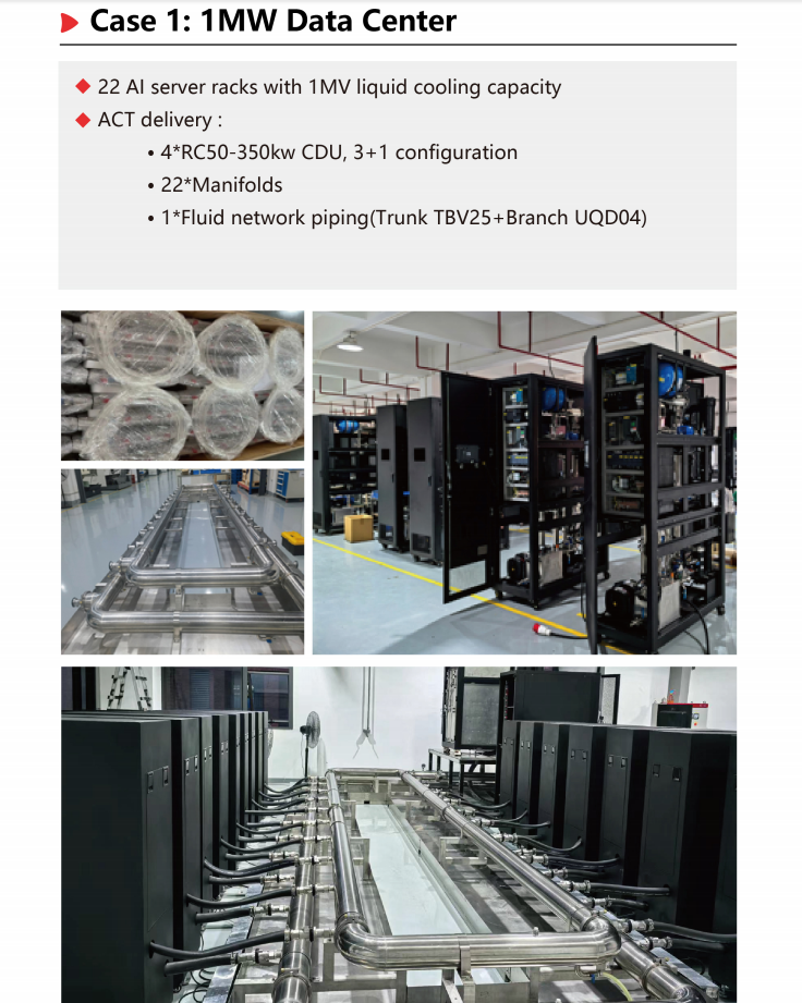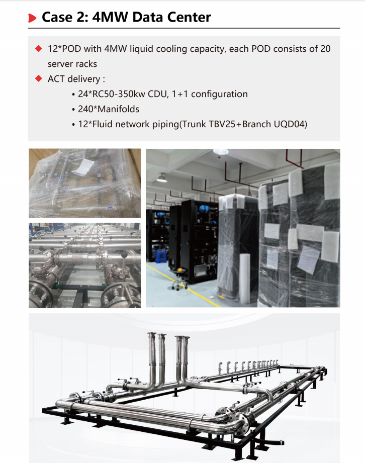 With strong demands of high performance and high density Datacenters for artificial intelligence (Al), high-performance computing (HPC),and enterprise computing applications , liquid cooling is widely applied tomeet the most demanding direct liquid cooling requirements. ACT's FNP delivers high performance, high reliability and customization for datacenters.