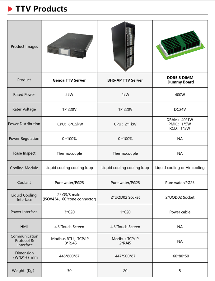 TTV (Thermal Test Vehicle), as a kind of thermaltest tooling, can simulate the generation of waste heatin the operation of server chips, and monitor the Tcasevalue in real time to form a controllable thermal load,providing a stable and reliable test environment forproduct development and verification.